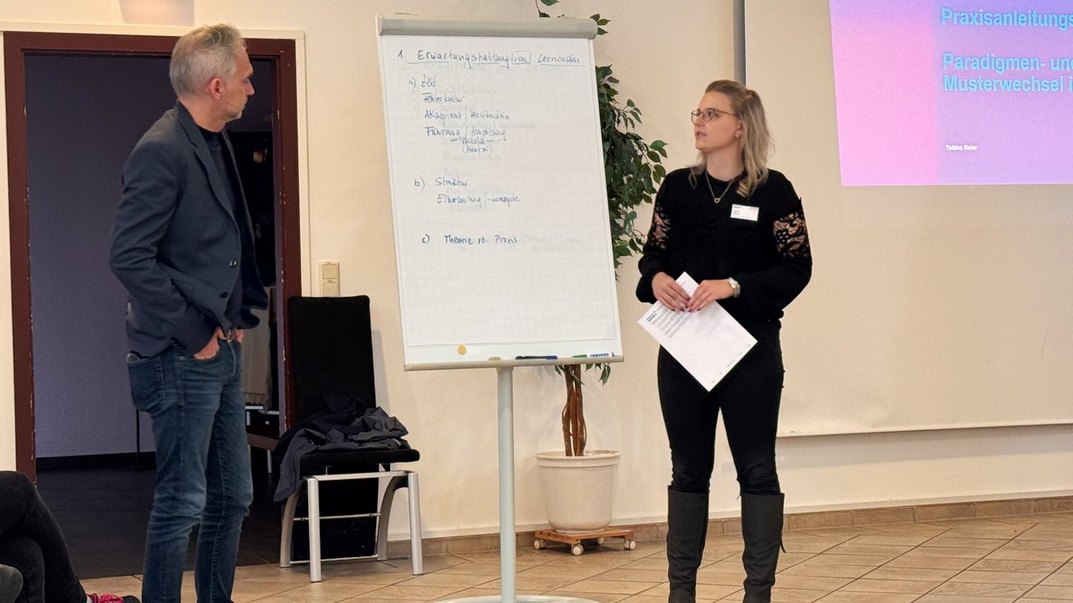 Gemeinsam diskutierten die Teilnehmenden, wie Auszubildende in den Einrichtungen bestmöglich beim Lernen begleitet werden können. Dabei wurden sowohl mögliche Herausforderungen durch viele Beteiligte als auch die Chancen der gemeinsamen Unterstützung bei der Kompetenzentwicklung betrachtet.
