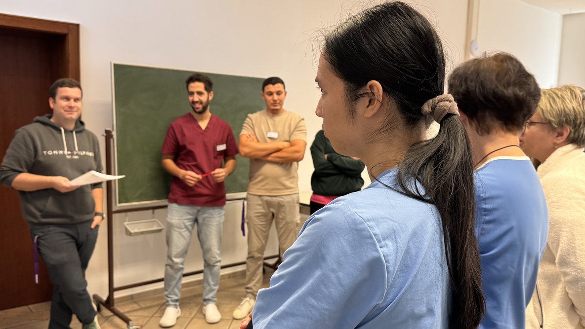 Im Impulsvortrag stellte Tobias Reier, zentraler Praxisanleiter, die wichtigsten Veränderungen des Paradigmenwechsels zur Kompetenzentwicklung in der Pflegeausbildung vor. Besonders hervorgehoben wurde dabei die Bedeutung der verschiedenen Lernorte – vom simulativen Training im Skills bis hin zum Einsatz in unterschiedlichen Pflegeeinrichtungen. Hier wenden Auszubildende ihr Fachwissen in realen und simulierten Pflegesituationen an, um eigene Entscheidungen kompetent treffen zu können. Denn „Handeln kann nur handelnd gelernt werden“ – so eine der wichtigen Kernaussagen.