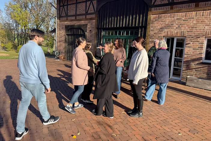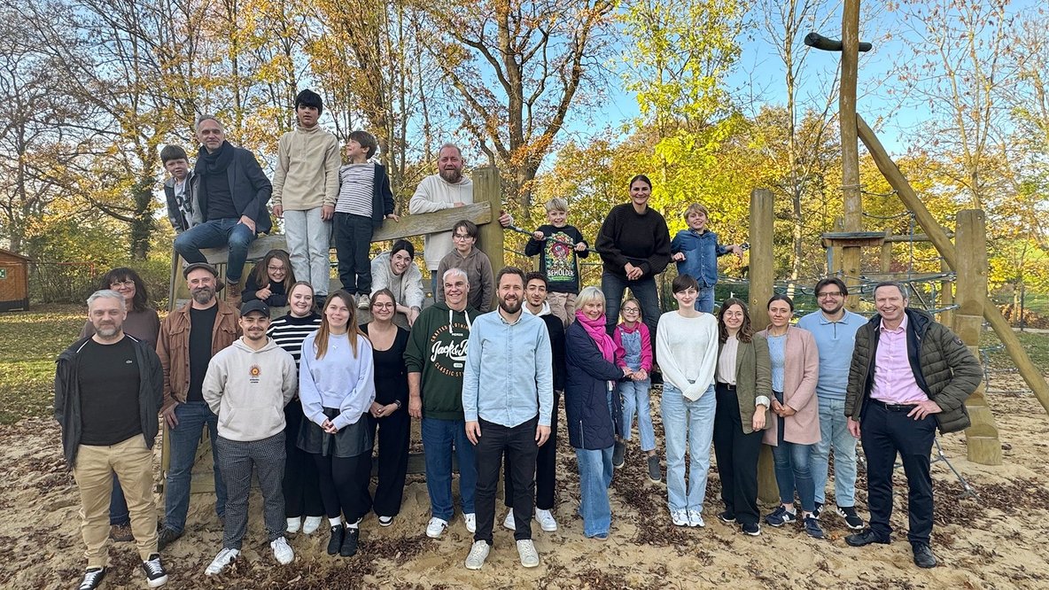 Die außergewöhnlich warmen Temperaturen und das herrliche Herbstwetter zogen Kinder und Erwachsene nach dem Essen schnell nach draußen. Dirk Poppinga, strategischer Leiter des Bereichs Hilfen zur Erziehung, nahm die Rutsche, die von der oberen Etage der früheren Scheune nach unten in den Garten führt, andere bevorzugten die Treppe. Unten angekommen, stürmten die Kids das Klettergerüst und schnappten sich einen Fußball. Projektmanager Patrick Gehrke kickte mit, Luisa Webersinn (Projektmanagerin national), Ilja Wolf (Finanzmanager) und Anna Schmökel (Senior Finanzmanagerin) kletterten für ein Teamfoto auf das große Spielgerät, später kamen alle zusammen für ein gemeinsames Gruppenbild. Zwei gemeinsame Stunden vergingen wie im Flug und alle waren sich einig, dass es es bald ein Wiedersehen geben soll. "Wir sind heute hier in diesem wunderbaren Kinderhaus, weil wir es von Beginn an mitgefördert haben. Es ist uns eine besondere Herzensangelegenheit. Es ist großartig", freute sich Angela Kaspar, die Vorstandsvorsitzende der Volkswagen Belegschaftsstiftung.