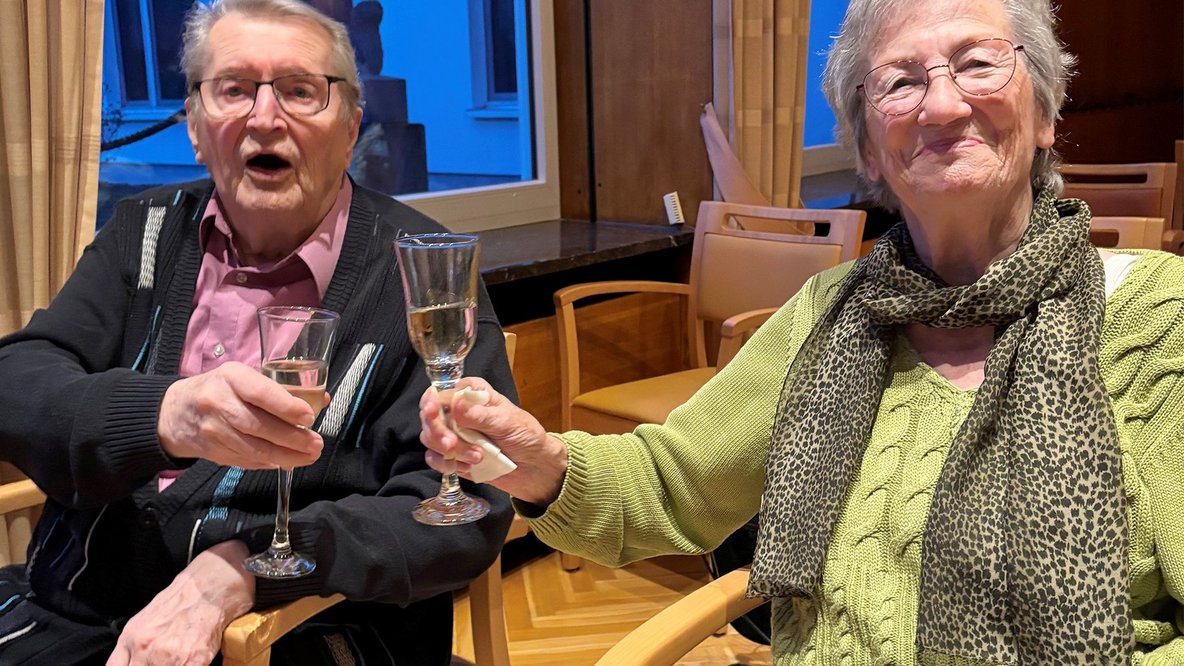 Der Wichernsaal des Emmaus-Heims war bis auf den letzten Platz besetzt beim Neujahrsempfang. Der Nachmittag wurde musikalisch gestaltet von Pastorin Michaela Willert und ihrem Mann Gerhard. Einrichtungsleitung Jenny Herrmann hielt eine kleine, unterhaltsame Ansprache und erzählte dabei auch von persönlichen Glückmomenten und wie es ihr gelingt, diese im Hier und Jetzt zu genießen. Weiter ging es mit Kuriositäten aus dem Alltag des Emmaus-Heims aus 2025, beispielsweise wieviel Tassen Kaffee am Tag, in der Woche und im Jahr im Emmaus-Heim getrunken worden sind. Diese und andere Statistiken brachten die Bewohnenden zum Schmunzeln und Lachen.